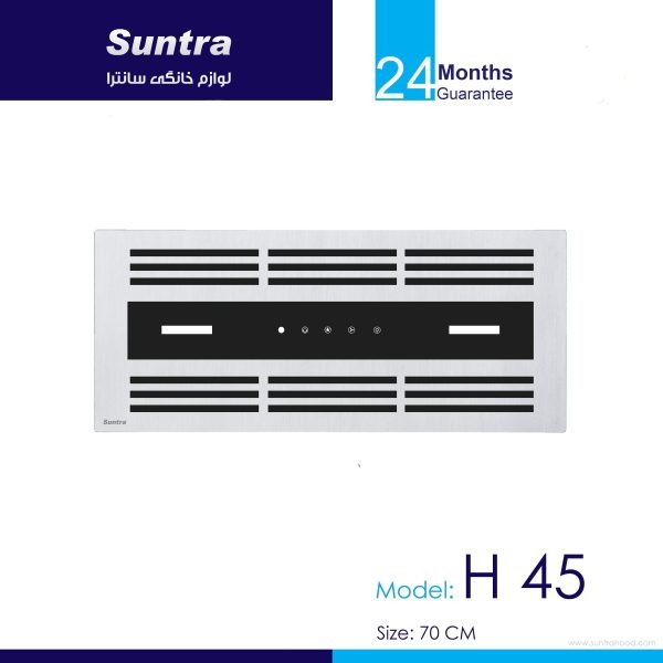 هود توکار (مخفی) سانترا مدل H 44 با ویژگی های منحصر به فرد و منطبق با تکنولوژی های روز دنیا وارد طراحی شده است. این مدل محصول با ویژگی و امکانات خوبی همراه شده است که دارا بودن موتور توربو 4 دور با مکش قوی و صدای کم و مجهز بودن به سیستم کنترل از طریق اشاره دست و دارا بودن سنسورهای بو و حرارت از جمله این ویژگی هاست. موتور این هود مجهز به سیستم ایمنی و محافظ حرارتی (ترموگارد) و دارای حلزونی از جنس فلز می باشد و قدرت مکش آن 1000 متر مکعب بر ساعت می باشد. سایر ویژگی های این هود از جمله فیلتر آلومینیومی سه لایه و عرض 90 سانتیمتر است.